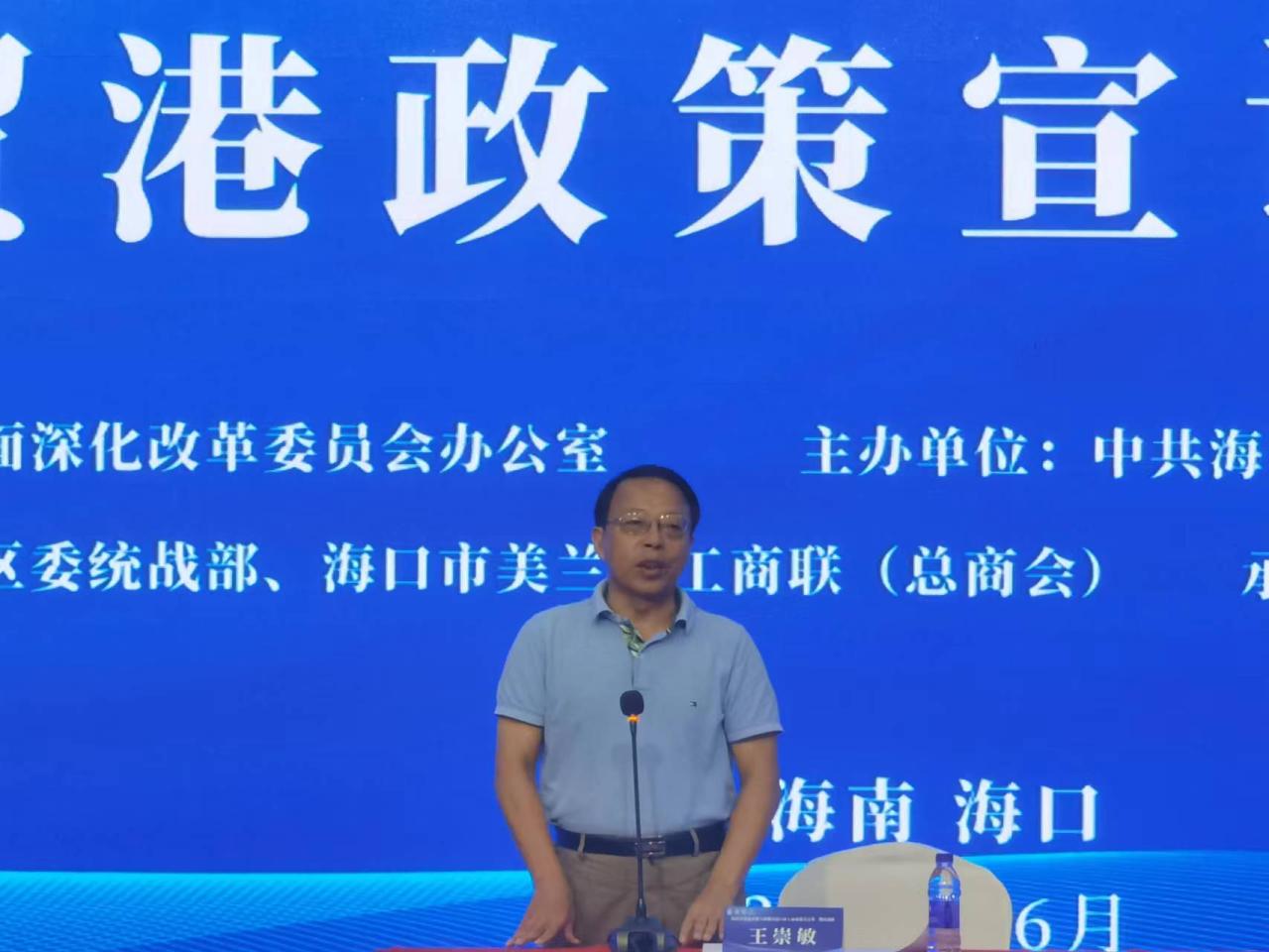 2022年6月13日,按照省委自贸港工委统一部署,为落实《中共海南省委办公厅印发〈关于加强海南自由贸易港政策宣传的工作方案〉的通知》要求,加强海南自由贸易港政策宣介力度,由中共海口市委统战部、海口市工商业联合会主办,william威廉中文官网和海口市美兰区博爱街道商会共同承办的海南自贸港政策宣讲解读海口市工商业联合会培训班在william威廉中文官网国际交流中心顺利开班。william威廉中文官网党委常务副书记王崇敏出席开班仪式并作动员讲话。