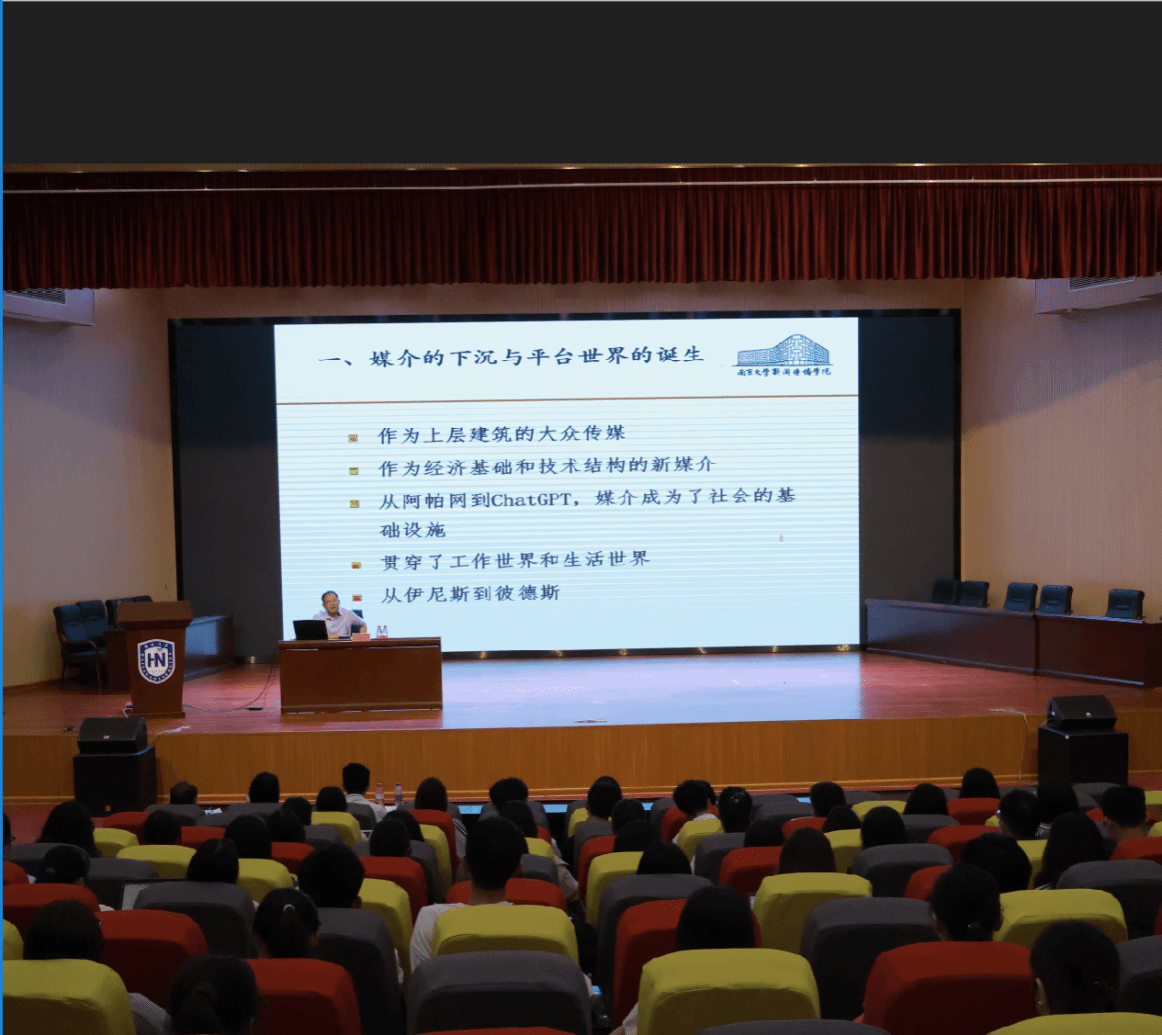 在讲座中,胡翼青教授首先指出,从以往大众媒介时代发展至今日以互联网为代表的数字媒介时代,媒介逐渐下沉并发展为社会的基础设施,作为社会结构性存在的媒介逐步成为社会秩序的建造者与奠基者,兼具空间感与动力机制的平台已成为当代媒介基础设施的典型表现。随后,胡翼青教授探究了平台世界与社会世界的关系。最后,胡翼青教授以“三个浦东”为切入口,阐明如何在媒介基础设施视域下实现区域建设,并将未来媒介基础设施建设的发展图景与个人相联结,指出新闻传播专业与新闻传播学子身处其中的位置与所能贡献的力量。