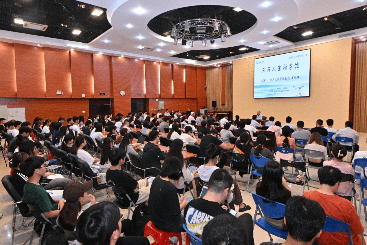 当天的讲座现场,莫教授思路清晰,侃侃而谈,深入浅出为现场读者娓娓讲述苏东坡的风雨人生。讲座最后,莫砺锋教授告诉海大师生,苏东坡一生风雨,但他在风雨中坚持走下去,还在逆境中书写了最辉煌的人生。这种人生态度对我们当代人起到非常好的借鉴与鼓励的作用。