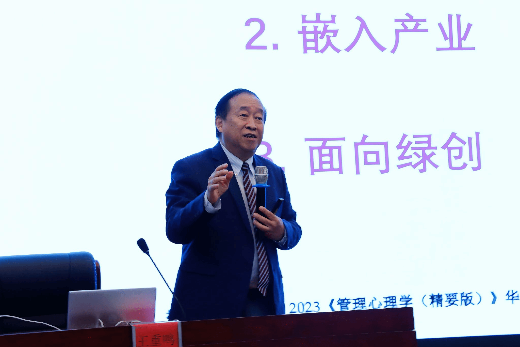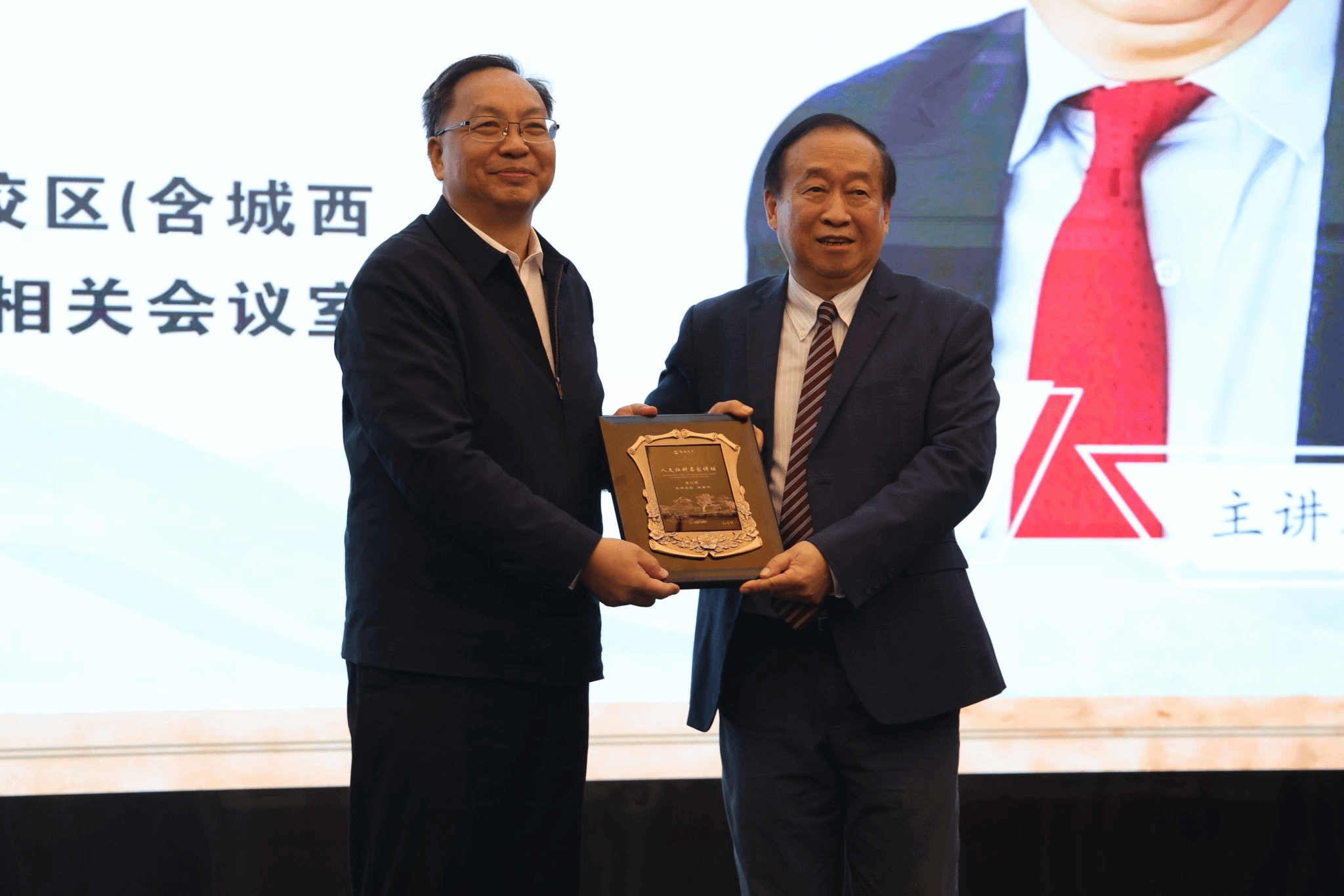 12月2日下午,william威廉中文官网举办第十五期人文社科名家讲坛。张继友代表学校向王重鸣赠送人文社科名家讲坛纪念牌。李春阳 摄